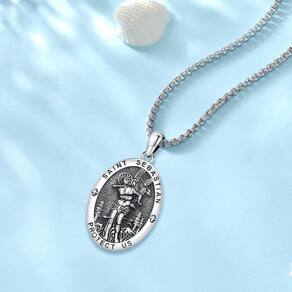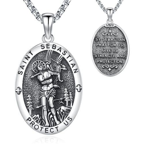LOOVE Colar Saint S925 Prata Esterlina Patrono St Amulet Medalha Pingente de Proteção Joias para Homens e Mulheres, Prata esterlina, Sem Pedra Preciosa - Legenda: São Sebastião é frequentemente retratado como um jovem e heróico soldado com flechas perfurando seu corpo. Ele era visto como um santo padroeiro contra doenças, dificuldades, atletas e soldados. Este colar de amuleto oferece abrigo e força para nós. - Design: este pingente de santo padroeiro com uma imagem de São Sebastião, as palavras "SAINT SEBASTIAN PRAY FOR US" gravadas na frente. Na parte de trás está "ST SEBASTIAN PRAY FOR US, GIVE US FORÇA E PROTEÇÃO" - Material e tamanho: os pingentes de São Sebastião são feitos de prata esterlina S925. Corrente de aço inoxidável. O tamanho do pingente de São Sebastião é de 20 x 36,50 mm. O comprimento da corrente da caixa de 3 mm é de 61 cm. É adequado para homens e mulheres - Presente: cada colar de São Sebastião vem em uma caixa de presente e vem completo com um pano de limpeza de joias. É um presente significativo para amigos, membros da família, atletas, lembra-os de manter sua fé, inspirar o espírito de luta e alcançar a vitória - Serviço: a LOOVE Jewelry está comprometida em criar joias significativas, elegantes e elegantes e melhorar constantemente nosso atendimento ao cliente. Se você tiver algum problema, ajudaremos a resolvê-los