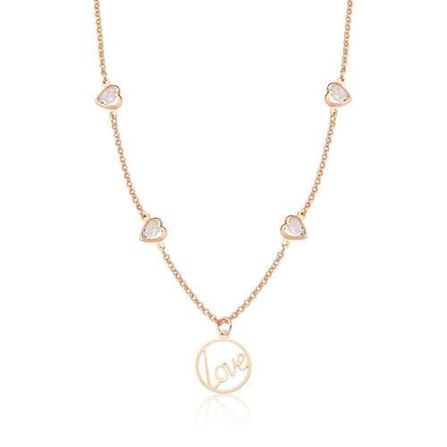 O Colar Love com Zircônias, Revestido em Ouro Rosê, foi pensado para trazer Amor à quem usar. Composto por elementos Clássicos dentro de um Design Moderno, transmitindo uma mensagem de Elegância Casual, a Coleção revela Luz para as mulheres se sentirem Radiantes.
