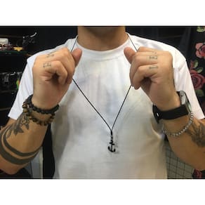 Leia com atenção antes de comprar Colar all black é uma ótima escolha para te deixar ainda mais estiloso. Temos diversos modelos e acessórios para completar o seu look. material utilizado Cordão encerado coreano 1,5 mm e no pingente metal envernizado 3cm . cor da peça Preto all black tamanho O cordão tem 43 cm e pode ser ajustado, ou seja, você pode ajustar de acordo com seu gosto. O pingente tem 3cm. Obs O valor é referente à 1 uma unidade. Cuidados com a peça: 1- evitar molhar frequentemente; 2- evitar produtos químicos em cima da peça. Marca: Bicudos Acessorios