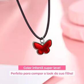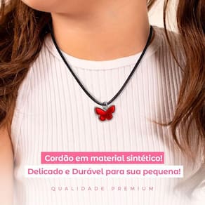 Colar Menina Infantil + Pingente Borboleta Qualidade Premium Colar Infantil Feminino Premium com Pingente de Coração Cupido - Preto e Vermelho Encante as meninas a partir de 5 anos com este colar infantil feminino de qualidade premium! O design encantador, a delicadeza e o estilo único deste colar fazem dele a escolha perfeita para complementar o visual das pequenas.