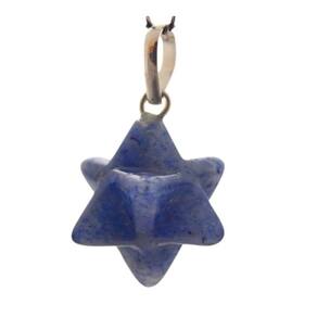 Merkaba Pedra natural Quartzo Azul de garimpo pedra com exelente lapidação em formato estrela merkaba, montado em pingente prata 950 natural montado em joalheria, damos garantia na prata e também na autenticidade da pedra.