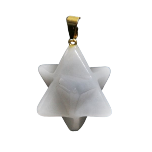 Pingente MerkabaH Pedra natural Quartzo Leitoso de garimpo pedra com exelente lapidação em formato estrela merkaba