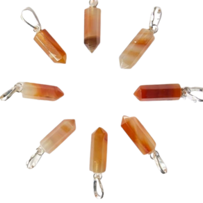 Pingente Micro Pontinha Agata Cornalina boa qualidade, pedra natural de garimpo, lapidação artesanal montado Pino e Presilha na Prata 950, ideal para colar e pulseiras, já vai montado