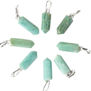 Pingente Micro Pontinha Amazonita Verde boa qualidade, pedra natural de garimpo, lapidação artesanal montado Pino e Presilha na Prata 950, ideal para colar e pulseiras, já vai montado