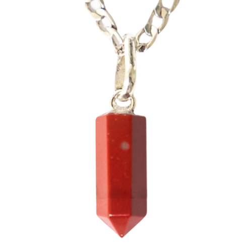 Colar pontinha de jaspe vermelho e pino em prata 950. Uma peça marcante e cheia de personalidade para adicionar ao seu estilo. Adquira já!