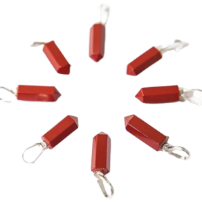 Pingente Micro Pontinha Jaspe Vermelho boa qualidade, pedra natural de garimpo, lapidação artesanal montado Pino e Presilha na Prata 950, ideal para colar e pulseiras, já vai montado