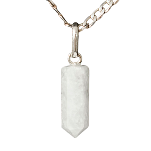 Pingente Micro Pontinha Quartzo Leitoso boa qualidade, pedra natural de garimpo, lapidação artesanal montado Pino e Presilha na Prata 950, ideal para colar e pulseiras, já vai montado