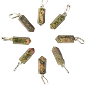 Pingente Micro Pontinha Unakita Verde boa qualidade, pedra natural de garimpo, lapidação artesanal montado Pino e Presilha na Prata 950, ideal para colar e pulseiras, já vai montado