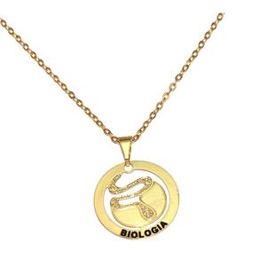 Colar Minha Profissão Biologia Bióloga Folheado Ouro 18k