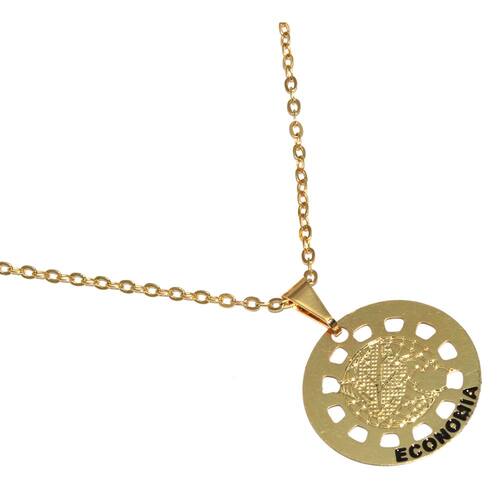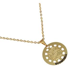 Corrente mede aproximadamente 45 Cm, pingente aproximadamente 2 Cm.