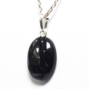 Pingente Cabochão Oval pedra Turmalina Preta 18mm Pino Prata 950 PRATA DE LEI Montagem feita com Pino e Perinha com furo na pedra genuina, com origem de garimpo e com lapidação e montagem manual