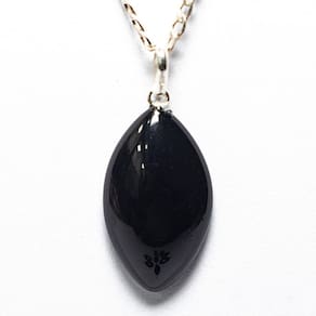 Colar navete obsidiana negra com pino em prata 950 - uma peça elegante e misteriosa que acrescenta um toque de sofisticação ao seu look.