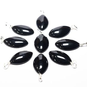 Pingente Navete Obsidiana Negra Natural Montagem Pino Prata 950 PRATA DE LEI Pino e Perinha com furo na pedra genuina, com origem de garimpo é formada pelo escorrimento da lava vulcânica em contato com outros minerais, ou água assim, como areia em sua tragetória também conhecido como vidro da terra, garimpos do México e com lapidação e montagem manual