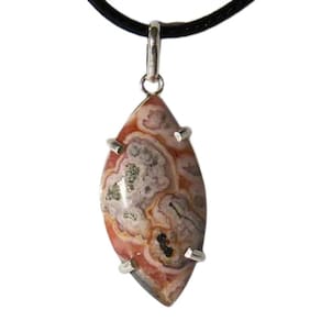 Colar Navete de Pedra Rodocrosita Natural em Prata 950 (Prata de Lei), uma peça de que encaixa em qualquer estilo, ideal para compor looks do dia a dia ou de ocasiões especiais. A rodocrosita conta com padrões de desenhos característicos da pedra, que formam ondas e mesclas de diferentes cores e tons.
