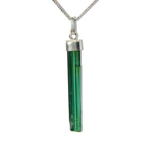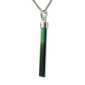 Colar canudo turmalina verde em prata 950. A beleza da pedra combinada com a elegância da prata para um acessório deslumbrante. Adquira já!