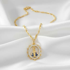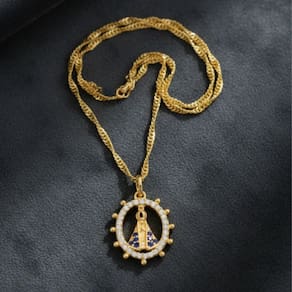 Colar Nossa Senhora Oval Cravejada Banhado a Ouro 18k
