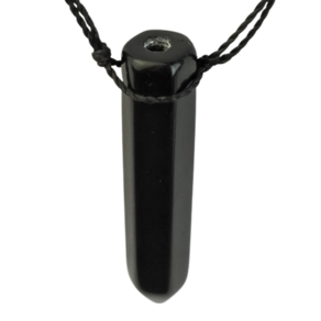 Pingente Difusor para Aromaterapia Pedra Obsidiana Negra Ponta Sextavada Ranhurado, Difusor com Lapidação Ponta com Abertura na Base e Ranhura no corpo para Ajudar na Fixação do Colar. Peça para fazer seu proprio pingente Amarrado com Cordão encerado ou arame. Pingente não Montando Pedra Genuina com origem garimpo lapidação Manual.