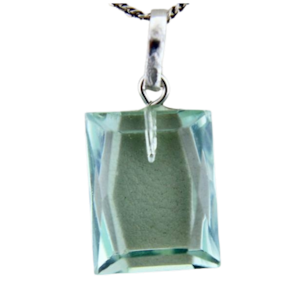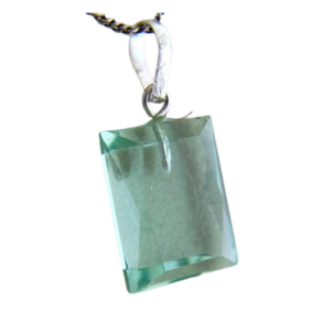 Pingente Obsidiana Verde Retangular Facetado qualidade Extra castoação Pino Prata 950 com perinha para passar o cordão origem garimpo lava vulcanica lapidação e montagem manual