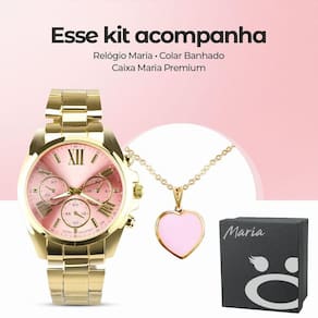 Colar Ouro + Caixa + Relogio Feminino Prova Dagua Banhado Conjunto Elegante Orizom Maria - Presente Perfeito! Relógio Analógico Feminino: - À prova d\'água, em aço inoxidável banhado a ouro dourado, para adicionar sofisticação ao seu visual.