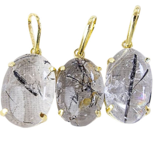 Deslumbre com o colar oval de turmalina incrustada no cristal, uma joia refinada que adiciona elegância e sofisticação a qualquer look.