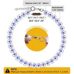 Hosiwei Coleira de pérola grande para cães com correntes de extensão, adequada para cães grandes, ocasiões e festas no jardim, corda de arame de aço inoxidável forte, colar de pérolas ajustável elegante e requintado para cães Leve para conforto: Confortável e elegante: esta coleira de cachorro brilhante é leve com acabamento suave, garantindo que seu cão fique confortável enquanto exibe sua linda coleira de cachorro. Esta coleira de cachorro com contas não puxará os pelos do filhote. Seu amigo peludo se sentirá à vontade se estiver socializando com outros animais de estimação ou posando para sessões de fotos memoráveis. Perfeito para ocasiões especiais Personalidade de ocasião especial: nosso colar de pérolas para animais de estimação é o melhor acessório para ocasiões como festas de animais de estimação, casamentos ou reuniões de família. Seu animal de estimação será o centro das atenções com este colar elegante e elegante. Fácil de usar e cuidar Uso e cuidados sem complicações: nosso colar de pérolas para animais de estimação é projetado para sua conveniência. O cordão elástico e os acessórios de metal facilitam colocar e tirar para o seu animal de estimação. Também é fácil de limpar, garantindo que o colar do seu animal de estimação permaneça intacto e pronto para usar em qualquer ocasião. 6 tamanhos diferentes para escolher, consulte antes de comprar. 37 cm: Corrente de extensão de 14,5 polegadas + 2,75 (14,5 a 17,2 polegadas) 41 cm: Corrente de extensão de 40,9 cm + 2,75 (40.9 cm-47.8 cm) 45 cm: 45 cm + corrente de extensão de 2,75 (17,75 - 52,1 cm) 49 cm: 49.0 cm + 2.75 Corrente de extensão (49.0 cm-55.9 cm) 53 cm: 52,8 cm + corrente de extensão de 2,75 (52,8 cm - 59,7 cm) - Coleiras fortes para animais de estimação: nossos colares de pérolas para animais de estimação são feitos de pérolas acrílicas e ferragens de aço inoxidável, duráveis e adequados para uso diário, eles não quebram facilmente como outras coleiras de pérolas e joias para cães. Observe que estas coleiras não devem ser usadas para restringir seu animal de estimação ou passear com seu cão na coleira. - Pérolas grandes de 0,75 polegadas: Considerando que este nosso colar de pérolas é adequado principalmente para cães médios e grandes, então escolhemos pérolas maiores e mais brilhantes para enfiar, o que tornará seu cão o centro das atenções em qualquer ocasião. - Comprimento ajustável: este colar de pérolas para cães com design exclusivo de corrente de extensão, você pode facilmente ajustar o comprimento do colar, garantindo um ajuste perfeito para o seu amigo peludo. Pode funcionar bem como uma coleira Pitbull, coleira Doberman Pinscher, acessório American Malamute, acessório de pastor alemão, coleira Rottweiler. - Acessório de moda multifuncional: seja para um passeio casual ou uma festa formal, este colar é um acessório versátil que aprimorará o estilo moderno do seu cão para qualquer ocasião, incluindo aniversário, casamento, dia dos namorados e festa de fim de ano. - Escolha de presente perfeita e super elegante: Surpreenda seu amigo amante de cães com este lindo colar. É um presente atencioso que combina estilo e funcionalidade, ideal para qualquer dono de animal de estimação. Se o seu filhote já tem muitas joias femininas para cães (coleira de cachorro com diamante, coleira floral/coleira de margarida ou coleira de strass), então nossas adoráveis coleiras para cães são a próxima adição perfeita!