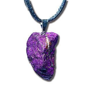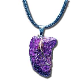 Colar pedrinha bruta de purpurita com pino prateado, ideal para trazer energia espiritual, proteção e elegância ao seu visual. Adquira o seu!