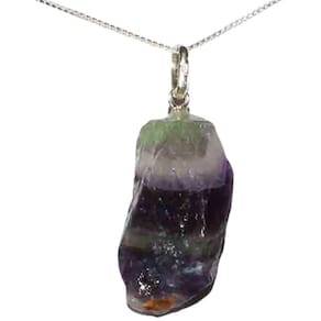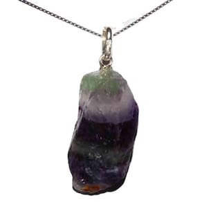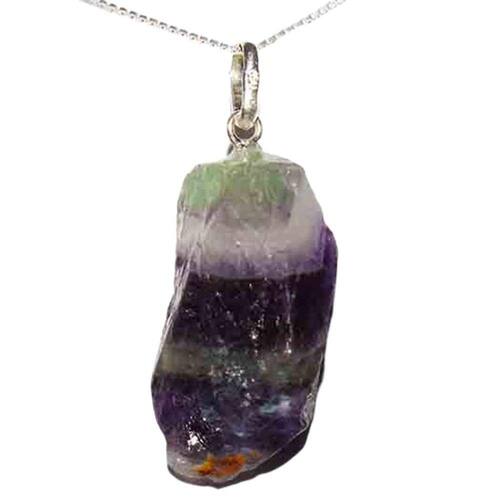 Pingente Cascalho Fluorita Multicor Bruto Natural pedra de garimpo montado Pino e Presilha em Prata 950. Ideal para colar e pulseiras, ja vai montado.