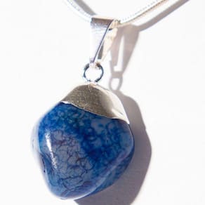 NOME DA PEDRA: Agata Azul COR DA PEDRA: Azul (Foto Ilustrativa) CORTE DA PEDRA: Rolado e polido CLARIDADE DA PEDRA: Translucido MEDIDA DA PEDRA: 15 a 20 Milimetros Aproximadamente (Varia de Acordo com Estoque) CASTOAÇÃO: Envolto com presilha prateado PESO TOTAL DA JOIA: 5 gramas aproximadamente (Varia de Acordo com Estoque)