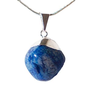 Colar pedra de Agata Azul envolto prateado. Acessório elegante e sofisticado que traz uma beleza da natureza para o seu visual.