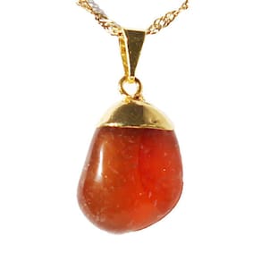 Colar pedra de Agata Cornalina envolto dourado. Acessório elegante e sofisticado com pedra naturalmente bela de tons laranja e marrom.