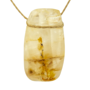 Pingente Pedra Rolada Difusor para Aromaterapia Pedra Hematoide Amarelo Ranhurado, Difusor com Lapidação Pedrinha Rolada com Abertura na Base e Ranhura no corpo para Ajudar na Fixação do Colar. Peça para fazer seu proprio pingente Amarrado com Cordão encerado ou arame. Pingente não Montando Pedra Genuina com origem garimpo lapidação Rolada.