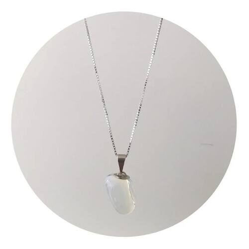 Colar elo veneziano em prata 925 com 45cm e pingente de pedra natural