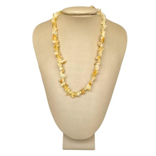 Um lindo colar de pedras naturais de citrino : 3 meses Certificado: Sim Sugestão: Para ela Pedra: Citrino SOBRE A PEDRA: O nome citrino é originário do latim citrus, que significa amarelo-limão. Na Antiguidade atribuia-se ao citrino qualidades místicas, com energias associadas ao equilíbrio emocional e à compreensão. Atualmente é uma pedra que evoca leveza e esplendor, sendo conhecida como pedra da Fortuna. É considerada a pedra da prosperidade e abundância, que atrai riquezas da terra e favorece o poder mental, trazendo boa sorte aos negócios e à vida . Tenha certeza de que você está fazendo a aquisição de um bem que valoriza sua auto-estima e vai compor um estilo elegante e sofisticado. Desenhamos por uma coleção elegante, com fundo minimalista que compõe com qualquer corpo. Aposte na beleza e na qualidade Ponte Vecchio Joias, faça sua compra. Imagens Reais do Produto Marca: Não Informado