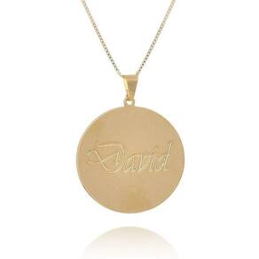 Um lindo modelo de colar personalizado em uma chapa redonda com o nome escrito, é puro charme essa peça. Personalize seu nome ou de alguém que seja muito especial para você e tenha assim um acessório único com um significado especial.
