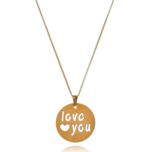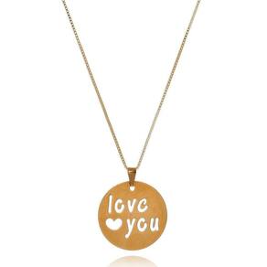 Um lindo modelo de colar personalizado em uma chapa redonda a frase I LOVE YOU, é puro charme e encanto.