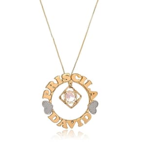 Um lindo modelo de colar personalizado mandala com nomes e um pingente em zircônia, com certeza um verdadeiro charme e encanto.