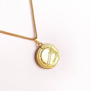Colar com pingente Medalha Ogum, esmalte azul escuro, orixá guerreiro, reconhecido pela sua coragem e força. Ogum: é sinônimo de Lei Maior, ordenação divina e retidão em todos os sentidos; ordena a evolução, é o senhor dos caminhos. Diametro: 26mm Corrente: 60 cm Material: zamac dourado com camadas de verniz italiano de 3 meses no banho e cravação das pedras mediante a defeitos de fabricação e não mau uso pelo cliente Caso aconteça um desgaste do banho, mudança de coloração, a peça será submetida a teste para averiguar se foi problema de fabricação ou mau uso. Marca: Não Informado Ean: 7794394805459
