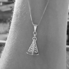 MODELO: Colar feminino de Nossa Senhora Aparecida banhado com 100 milésimos de prata 925.