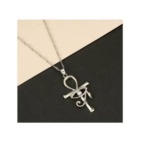 Colar Pingente Olho De Horus Egípcio Cruz Prateado Colar Olho de Hórus com Cruz Ansata Ankh - Proteção e Sabedoria Eleve seu estilo com um acessório repleto de história e simbolismo. Este colar combina dois dos mais poderosos amuletos do Egito Antigo: o Olho de Hórus, símbolo de proteção espiritual e clarividência, e a Cruz Ansata Ankh , que representa a vida eterna e a regeneração. Ideal para quem busca um visual marcante, alternativo e com significado.