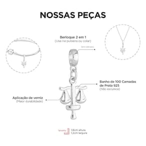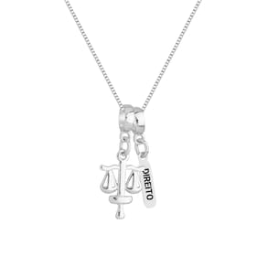MODELO: Colar feminino da Profissão Direito banhado com 100 milésimos de prata 925.