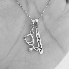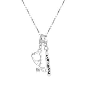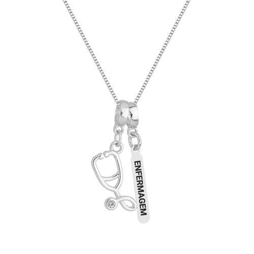 MODELO: Colar feminino da Profissão Enfermagem banhado com 100 milésimos de prata 925.