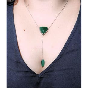 Colar Pingete Duplo Agata Verde Ródio Branco Lizzy Fatin