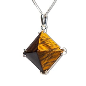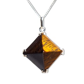 Colar de pirâmide com pedra olho de tigre e prata 950. Um acessório único e elegante para complementar o seu visual. Adquira já em seu acervo! O que irá receber: 1- Colar com Pingente em pedra Natural pronto para uso Detalhes do Cordão ou Colar: Cordão ou Colar, feito de Prata 925 Fecho Lagosta Dimensões: 40 cm comprimento x 2 mm largura Peso aproximado: 2 gramas (Leve) Detalhes do Pingente: Pingente Piramide Facetado pedra Olho de Tigre natural lapidação manual pedra com boa qualidade, base lapidação Quéops NOME DAS PEDRAS: Olho de Tigre COR DAS PEDRAS: Marrom com Rajas Douradas CORTE DAS PEDRAS: Piramide Facetado Tipo Queops com Polimento vibrado CLARIDADE DAS PEDRAS: Sem Transparência e Brilhoso MEDIDA DAS PEDRAS: 16 x 13 Milimetros (Varia de acordo com estoque) PESO TOTAL DA JOIA: 15 Quilates Aproximadamente MONTAGEM: Garra na Prata 950 Por ser pedra natural podem apresentar variações em suas tonalidades e grafismos, há também a possibilidade de ocorrerem pequenas inclusões que irão se assemelhar a fissuras, mas que são normais de minerais autentico de garimpo Hidratação oleo mineral, so compre apos ler e entender isso! Marca: CristaisdeCurvelo