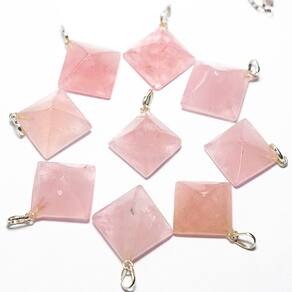 Pingente PIRAMIDE Quartzo Rosa Lapidação por Vibração Pino Prata 950, Pedra natural lapidação Facetado manual pedra Quartzo Rosa Natural de Garimpo, baseada na lapidação da Grande Quéops