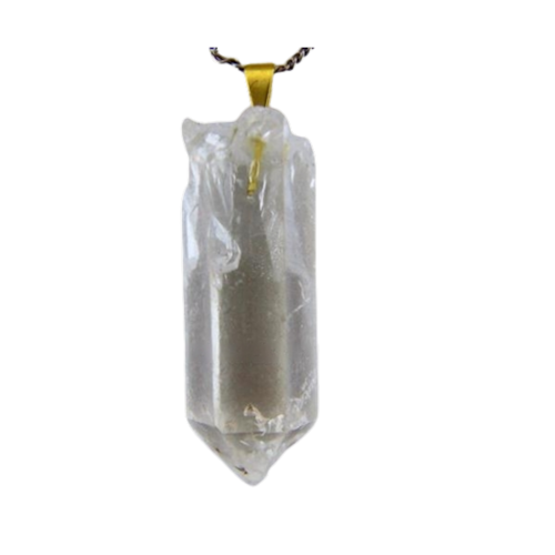 Pingente Ponta de Cristal natural bruto, pedra de garimpo montado na presilha e pino dourado , ideal para colar e pulseiras, já vai montado.