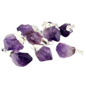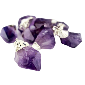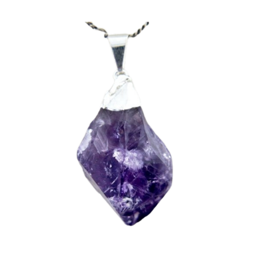 Pingente PONTA BRUTA Ametista pedra de garimpo sem lapidação e montagem Envolto Prateado, ideal para colar e pulseiras, ja vai montado.
