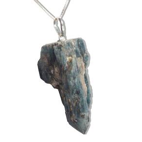 Colar de Prata 925 com pingente de Cianita Azul natural, pronto para uso.
