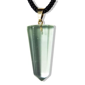 Detalhes do Colar NOME DAS PEDRAS: Obsidiana Verde COR DAS PEDRAS: Verde Bem Claro Foto Ilustrativa CORTE DAS PEDRAS: Sextavado Gerador CLARIDADE DAS PEDRAS: Brilhoso MEDIDA DAS PEDRAS: 30 x 11 Milimetros Pequena Variação Pra + ou - CASTOAÇÃO : Pino Preso Sob Furo + Perinha para Corrente em metal dourado PESO TOTAL DA JOIA: 20 Quilates Com Variação pra + ou - Marca: CristaisdeCurvelo