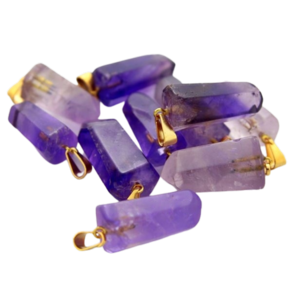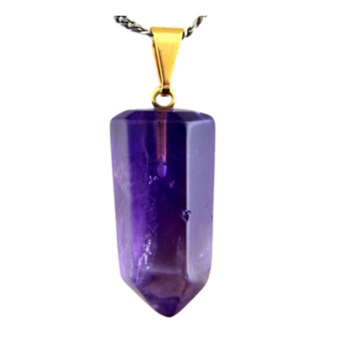 Pingente PONTA de Ametista pedra de garimpo com lapidação artesanal montado no dourado , ideal para colar e pulseiras, ja vai montado.