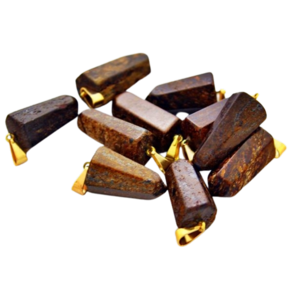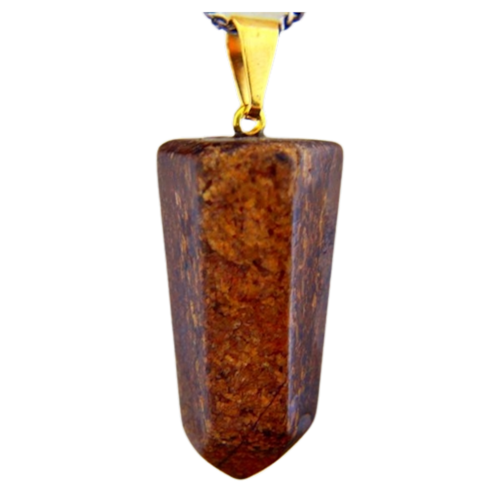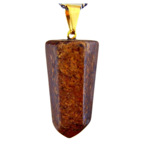 Pingente PONTA de Bronzita pedra de garimpo com lapidação artesanal montado no dourado , ideal para colar e pulseiras, ja vai montado.